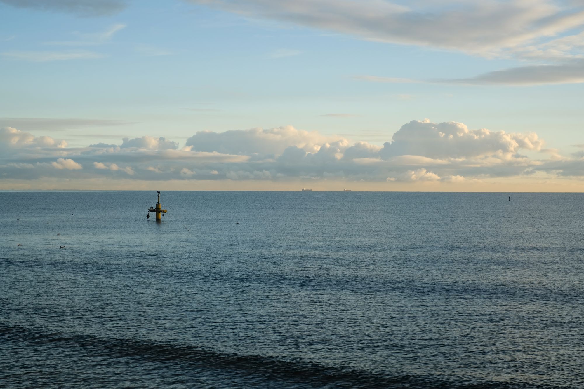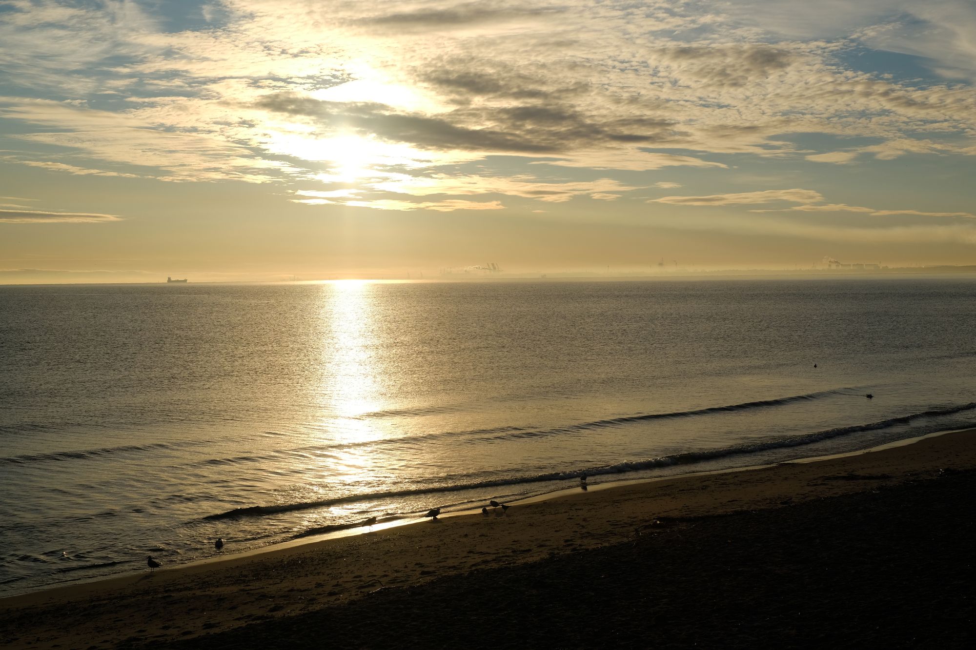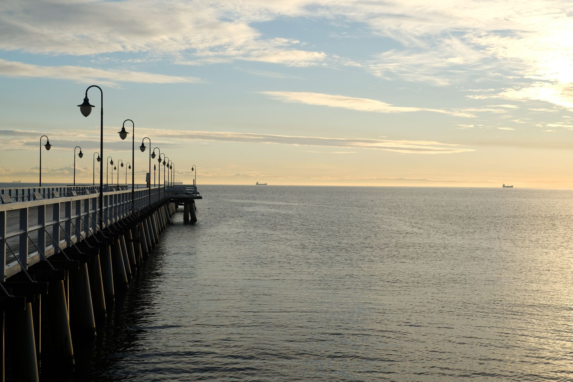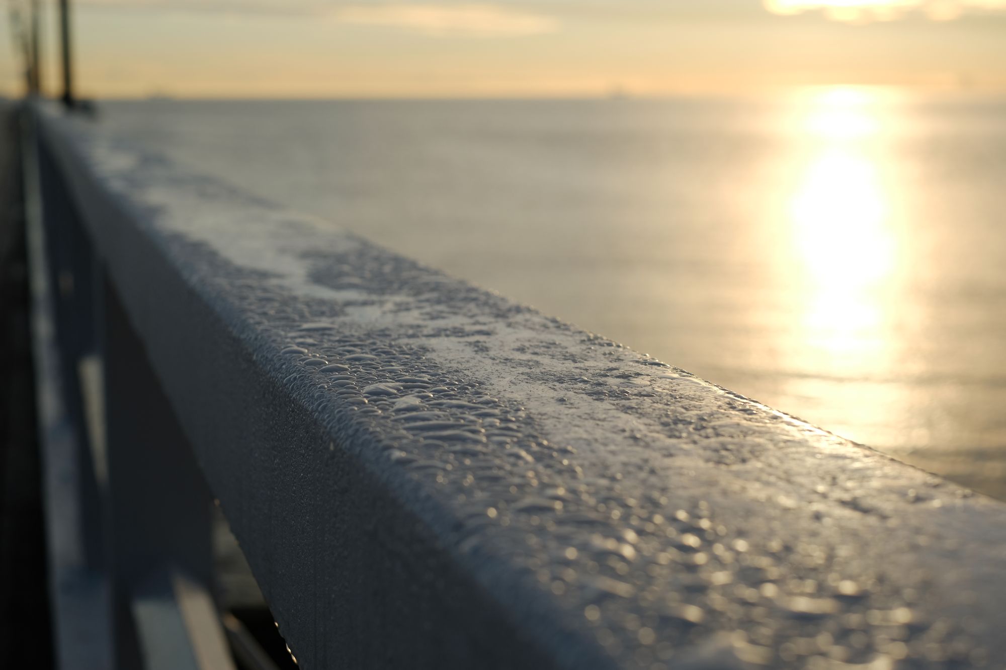 A morze dziś wyglądało zjawiskowo. Poszczęściło również światłem. Poranek był mroźny, molo pokryte warstwą szronu, niebo z fikuśnym zaczesem z chmur. Ludzi, prawie brak. Na plaży tylko mewy. Miło.